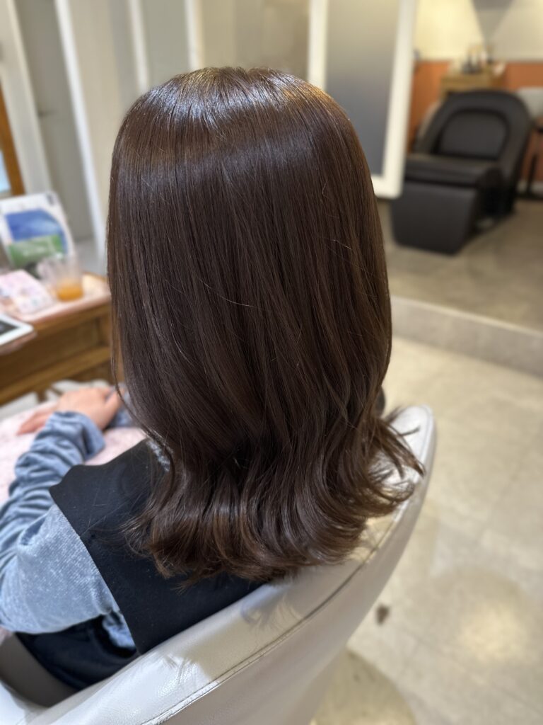 当店のブラウンカラーは、赤みをおさえた透明感のある発色で、ツヤと柔らかさをプラス♪